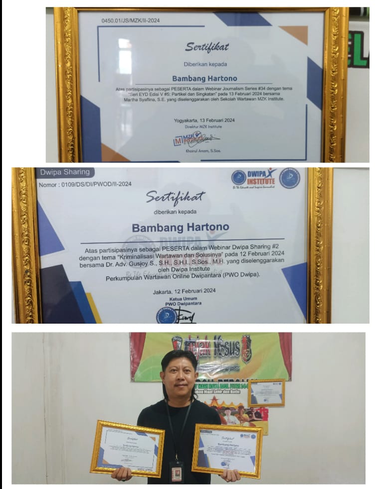 “Terima kasih atas penghargaan dua sertifikat dari Dwifa Institut dan Sekolah Wartawan MZK Institute. Ini merupakan sebuah kehormatan besar bagi saya dan tentunya untuk Forum Komunikasi Wartawan Kabupaten Pringsewu serta media JejakKasus Lampung. Semoga penghargaan ini menjadi pemicu bagi kami untuk terus berinovasi dan memberikan kontribusi yang lebih besar lagi dalam dunia jurnalisme,” ujar Bambang Hartono.”