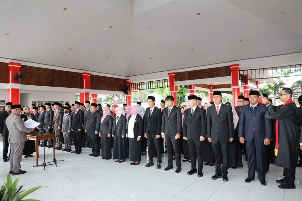 Prosesi pelantikan dilakukan oleh Bupati Lampung Selatan H. Nanang Ermanto, di Aula Sebuku, rumah dinas bupati setempat, Kamis pagi, 7 Maret 2024.