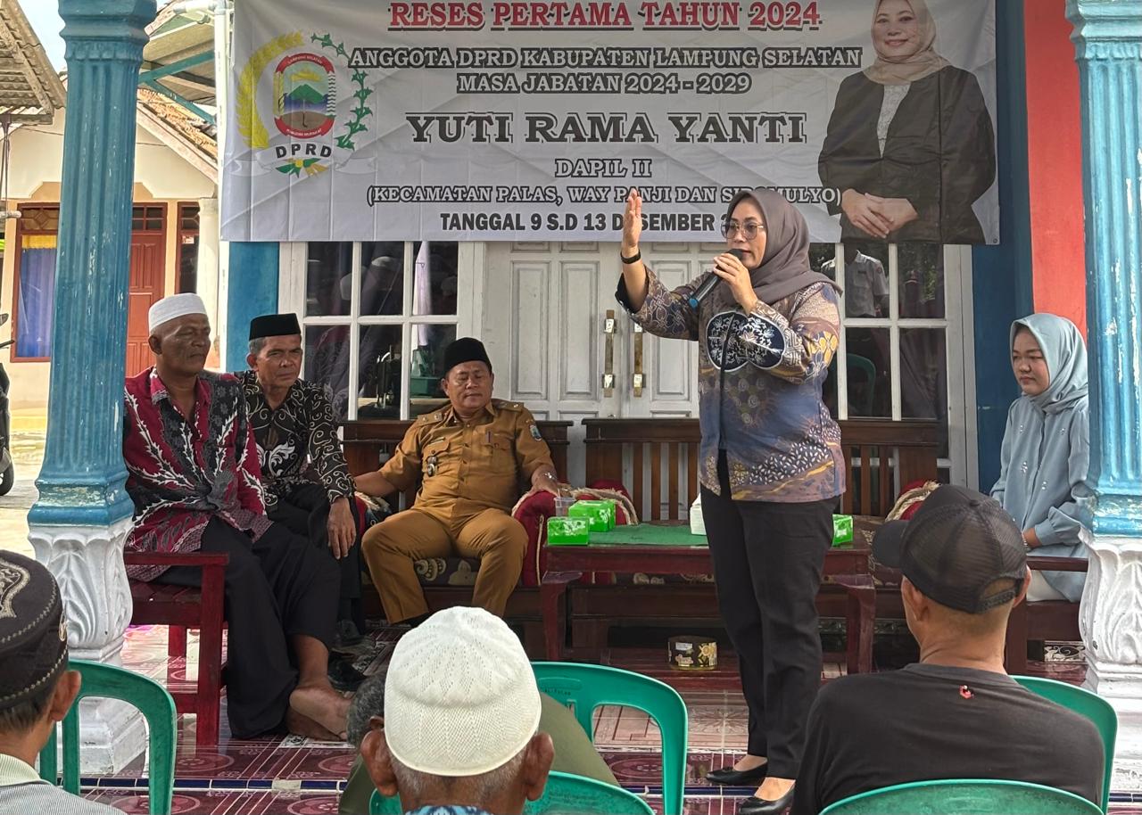 Royalnews17.com — Anggota DPRD Kabupaten Lampung Selatan, Yuti Rama Yanti, menggelar reses pertama tahun 2024 di Desa Mekar Mulya Kecamatan Palas, Lampung Selatan, pada Selasa, (10/12/2024).