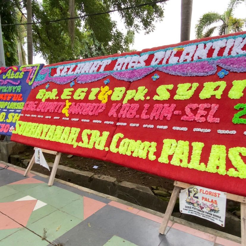 Karangan bunga dari pemerintah kecamatan hingga kepala desa di 21 desa Kecamatan Palas tampak berjejer rapi di lingkungan Pemkab Lampung Selatan, sebagai bentuk dukungan dan harapan terhadap kepemimpinan baru di daerah tersebut.