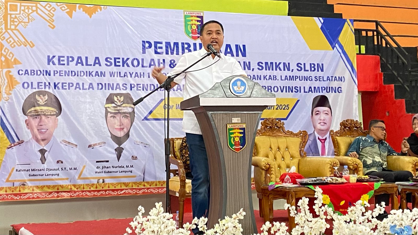 Royalnews17.com – Dinas Pendidikan dan Kebudayaan (Disdikbud) Provinsi Lampung menggelar Pembinaan Kepala Sekolah dan Guru SMA, SMK, serta SLB di wilayah Cabang Dinas Pendidikan Wilayah 1 (Kota Bandar Lampung dan Kabupaten Lampung Selatan). Kegiatan ini berlangsung di GOR Way Handak (GWH) Kalianda, Lampung Selatan, pada Sabtu (22/2/2025).