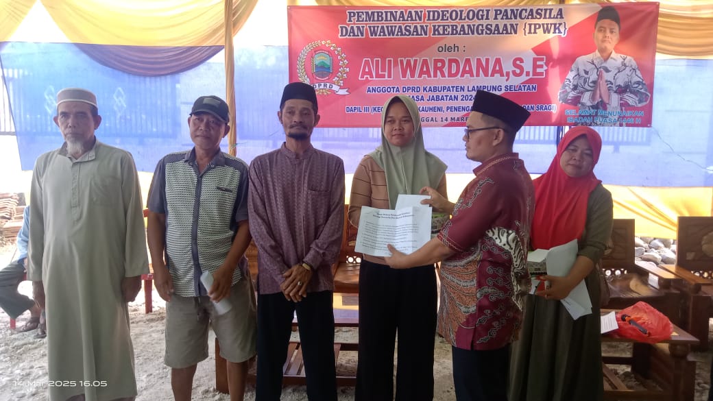 Royalnews17.com — Anggota Dewan Perwakilan Rakyat Daerah (DPRD) Kabupaten Lampung Selatan (Lamsel) menggelar sosialisasi pembinaan Idiologi Pancasila dan Wawasan Kebangsaan (IPWK) di Desa Klaten, Kecamatan Penengahan, pada Jum’at (14/3/2025).