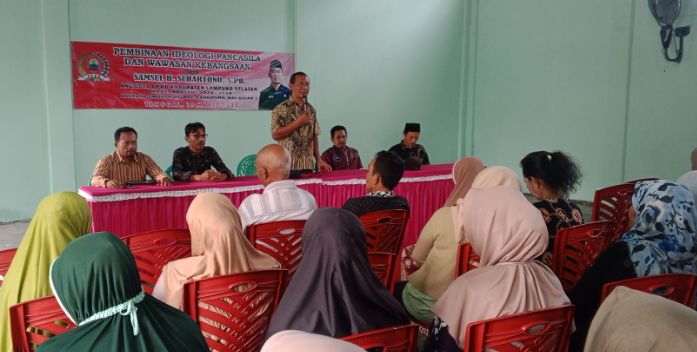 Royalnews17.com — Anggota DPRD Lampung Selatan Samsul H. Suhartono S.Pd Gelar Ideologi Pancasila dan Wawasan Kebangsaan (IPWK) di Balai Desa Sidoasri Kecamatan Candipuro, Sabtu (15/3/2025).