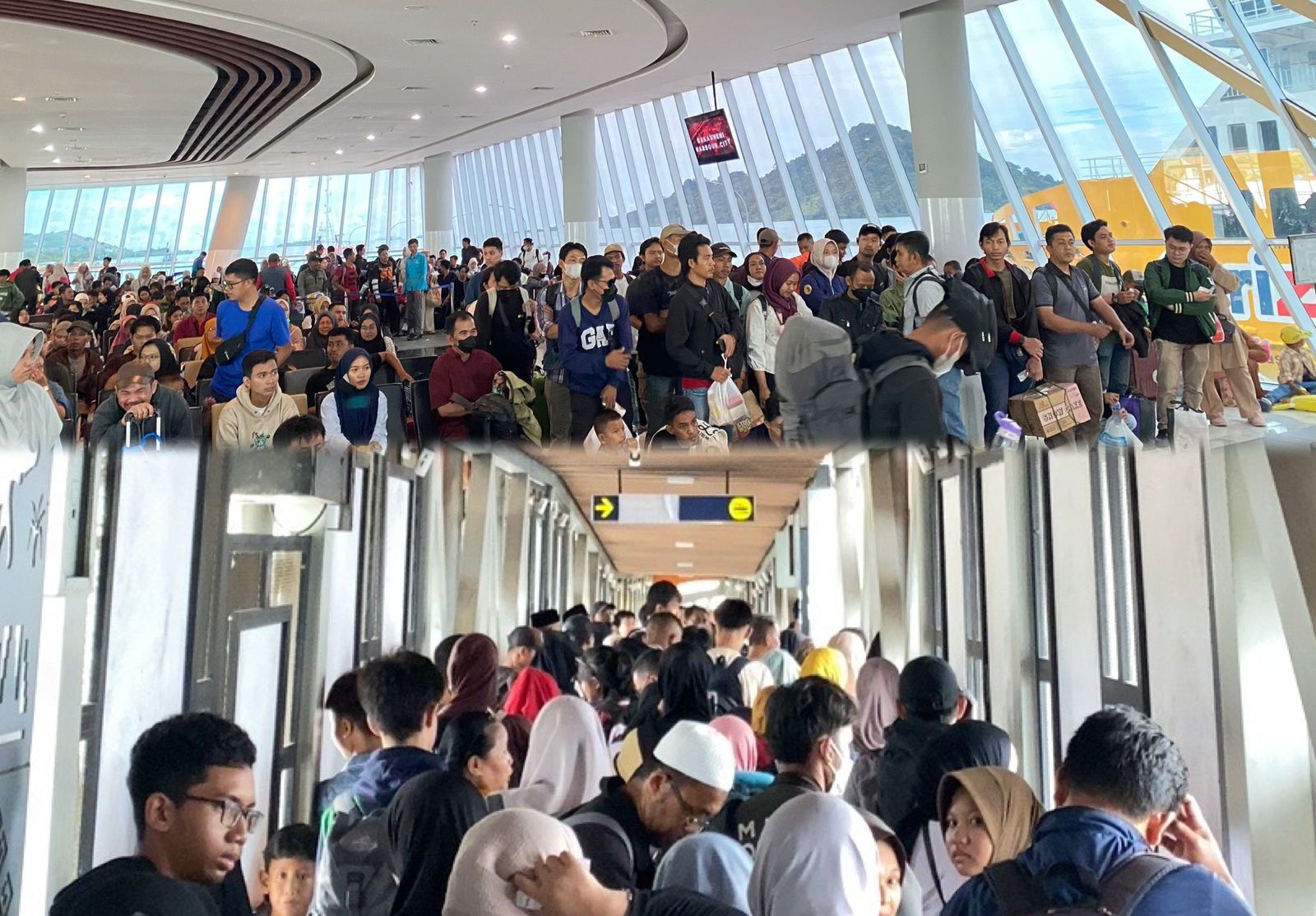 “Kami masuk sekitar pukul 10.15 WIB, dan hingga 11.10 WIB, ini masih menunggu kapal untuk berangkat. Biasanya kami menggunakan kapal eksekutif, tetapi tahun ini kapal eksekutif juga digunakan sebagai kapal reguler,” jelasnya.
