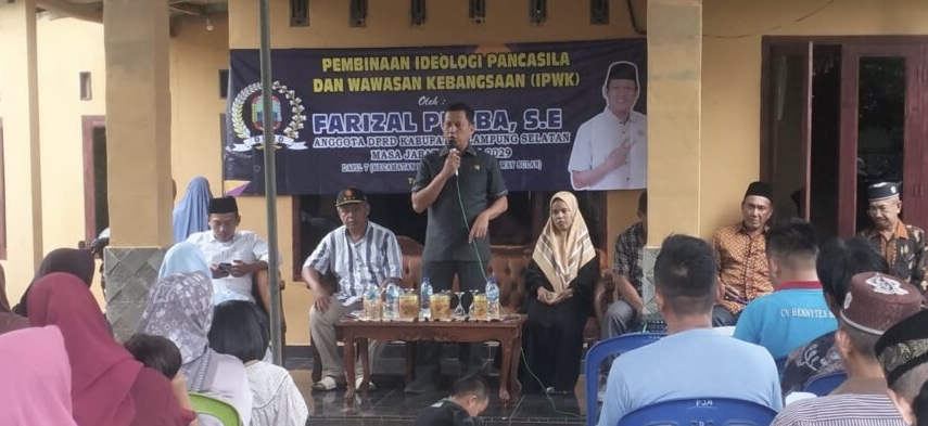 Royalnews17.com — Farizal Purba anggota Dewan Perwakilan Rakyat Daerah (DPRD) Lampung Selatan menggelar sosialisasi pembinaan Ideologi Pancasila dan Wawasan Kebangsaan di Dusun Tanjung Raman Desa Tanjung Agung Kecamatan Katibung Lampung Selatan, Minggu, (15/6/2025).