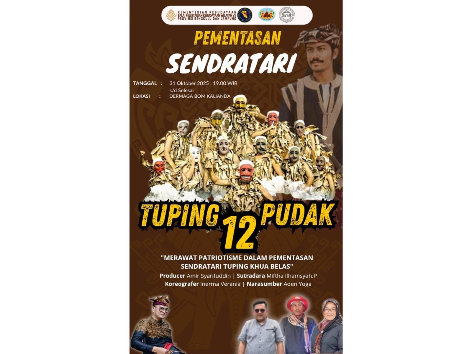 “Pementasan ini lahir dari rasa bangga dan hormat terhadap budaya Lampung yang luhur. Melalui karya ini, kami ingin menanamkan kembali semangat tanggung jawab, kesetiaan, dan pengabdian kepada bangsa sebagaimana nilai-nilai yang terkandung dalam karakter tokoh Tuping Khua Belas,” ujar Amir, Jumat (31/10/2025).