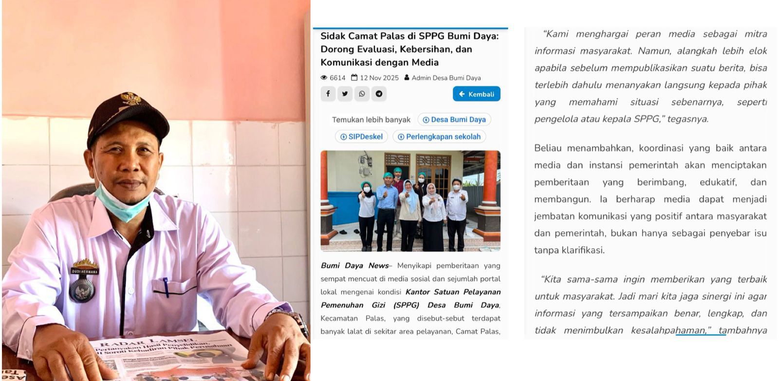 Tidak hanya dituding menyebarkan berita hoaks, pihak Pemdes juga diduga membela sepihak Satuan Pelayanan Pemenuhan Gizi (SPPG) Bumi Daya dan menyudutkan para pewarta dalam pemberitaannya.