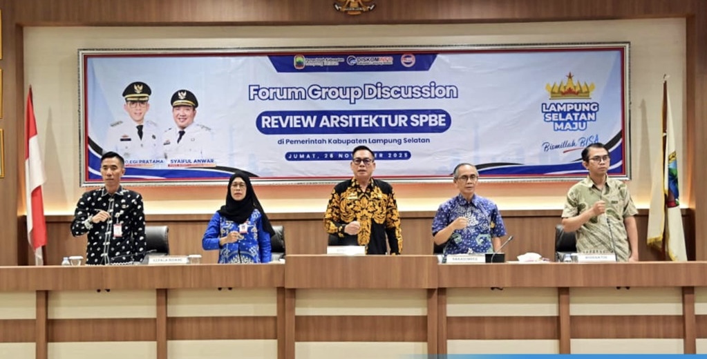 Royalnews17.com – Pemerintah Kabupaten (Pemkab) Lampung Selatan melalui Dinas Komunikasi dan Informatika (Kominfo) menggelar Forum Group Discussion (FGD) Review Arsitektur Sistem Pemerintahan Berbasis Elektronik (SPBE) dan Penyusunan Arsitektur Data di Aula Rajabasa, Kantor Bupati Lampung Selatan, Jumat (28/11/2025).