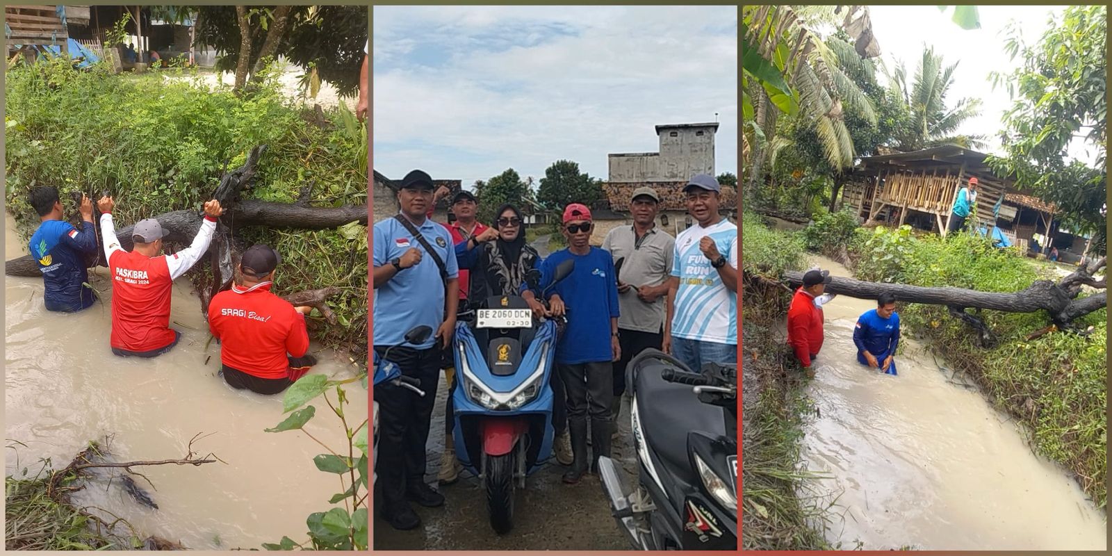 Kegiatan gotong royong tersebut dihadiri langsung oleh Camat Sragi Wayan Susana, Sekretaris Camat (Sekcam) Sragi Suhadi, perwakilan Dinas Sosial Kecamatan Sragi Tika, perangkat desa, serta warga setempat yang bersama-sama berjibaku membersihkan sisa material banjir yang menyumbat saluran air.